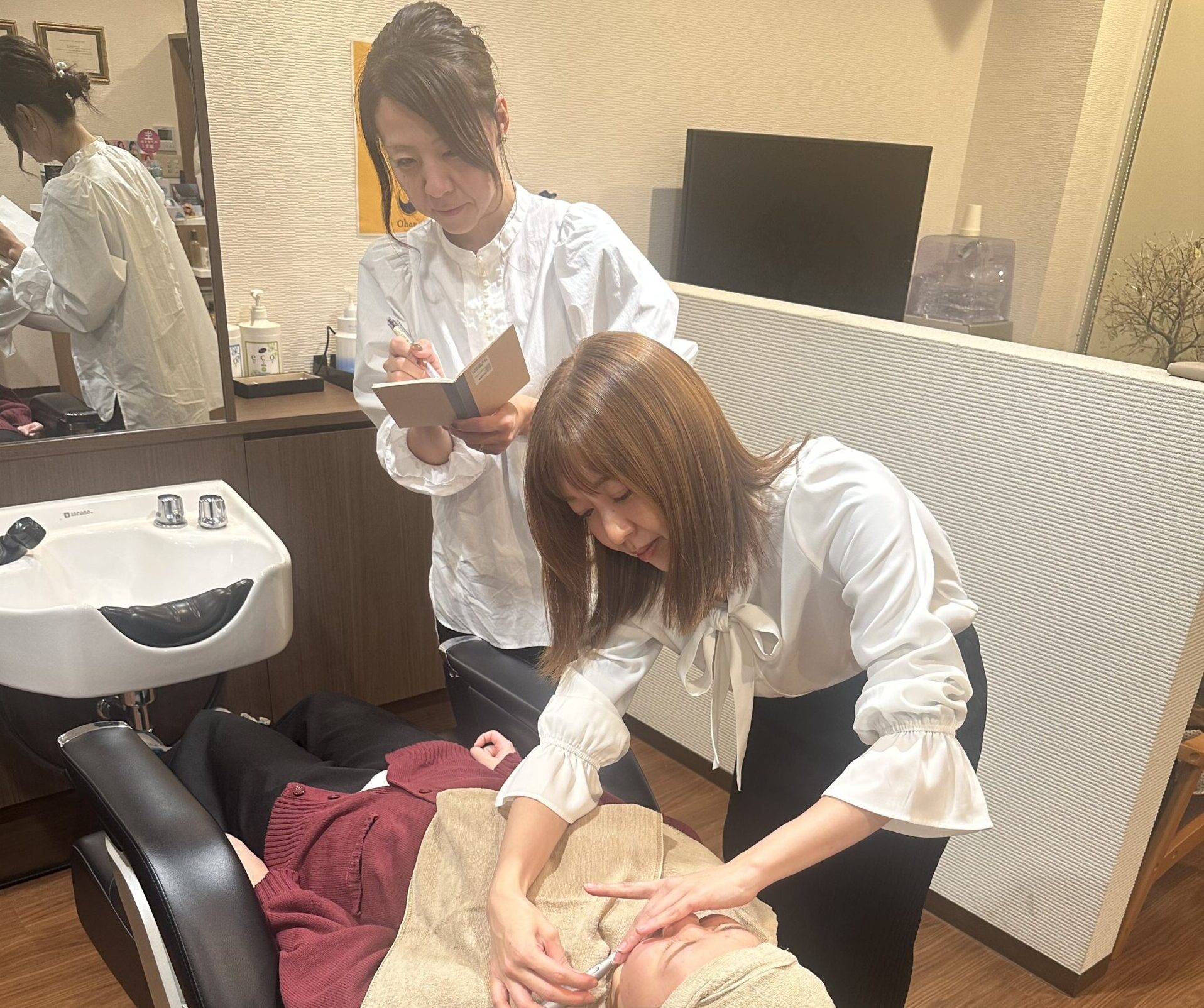 ハンドセラピーシェービングは、Ohana hair & spaの理容師 山崎麻沙末さんより技術指導を受けております。